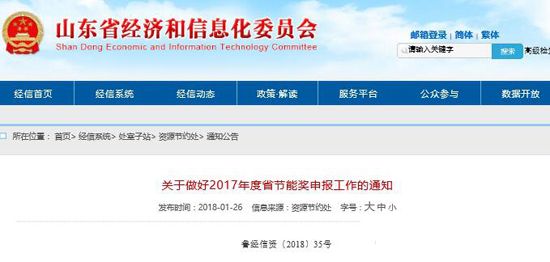 山東省啟動組織開展2017年度省節能獎申報工作