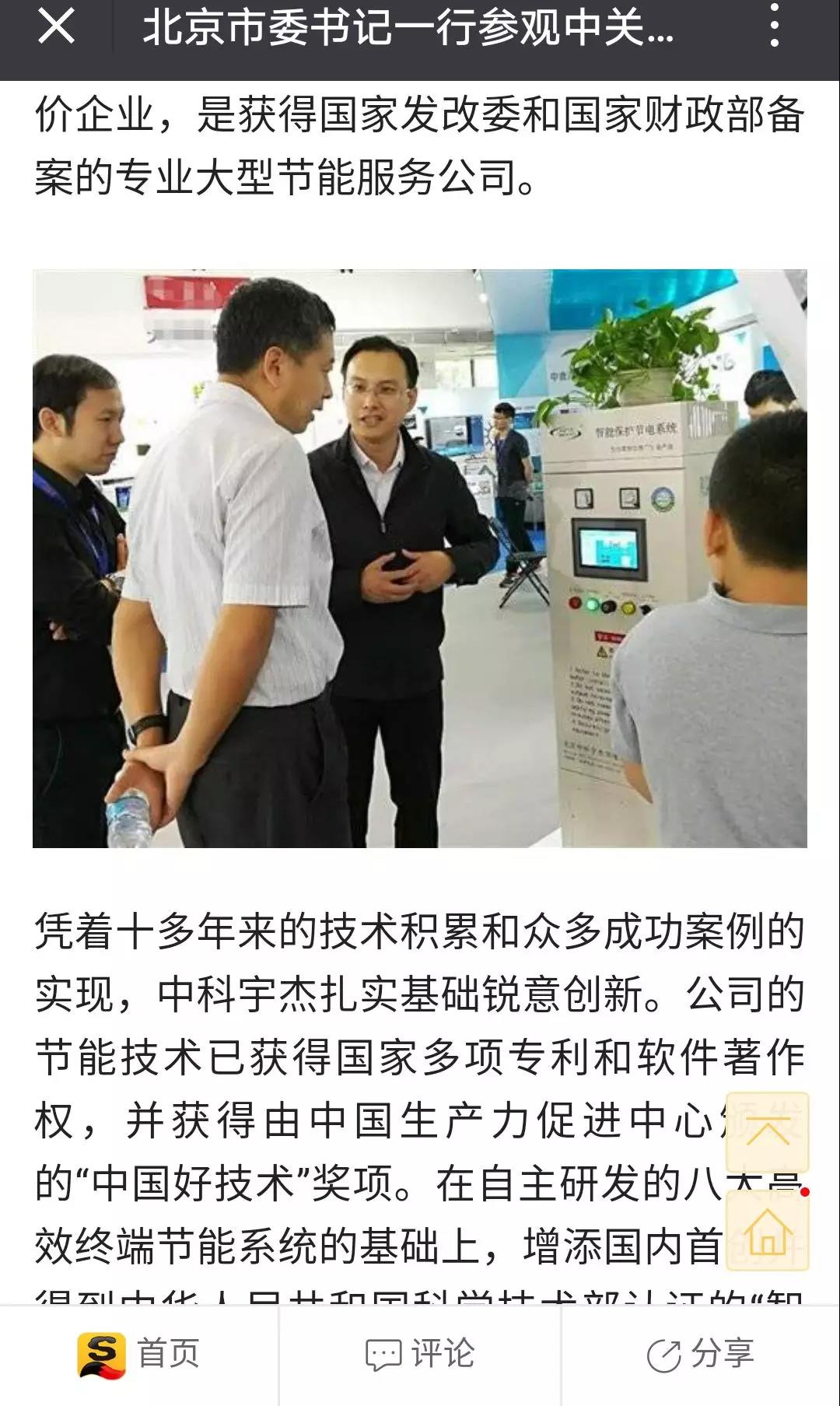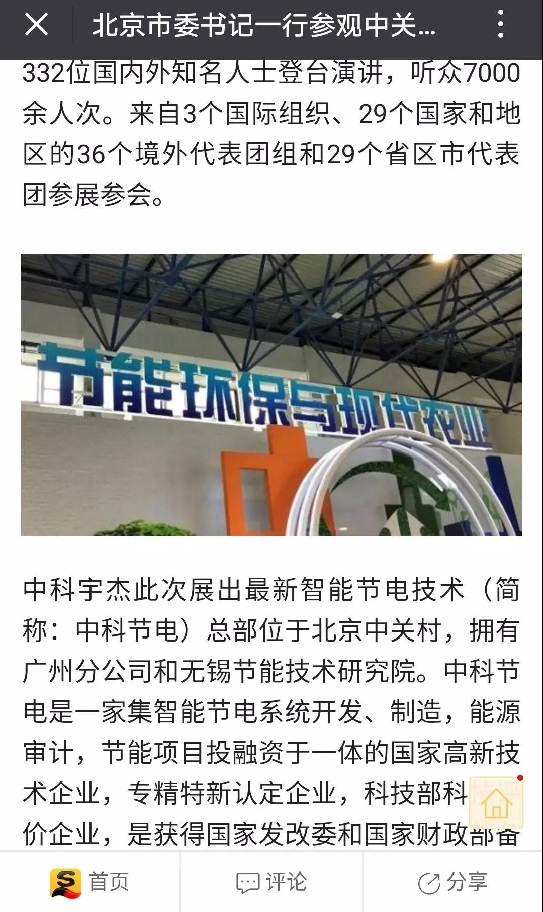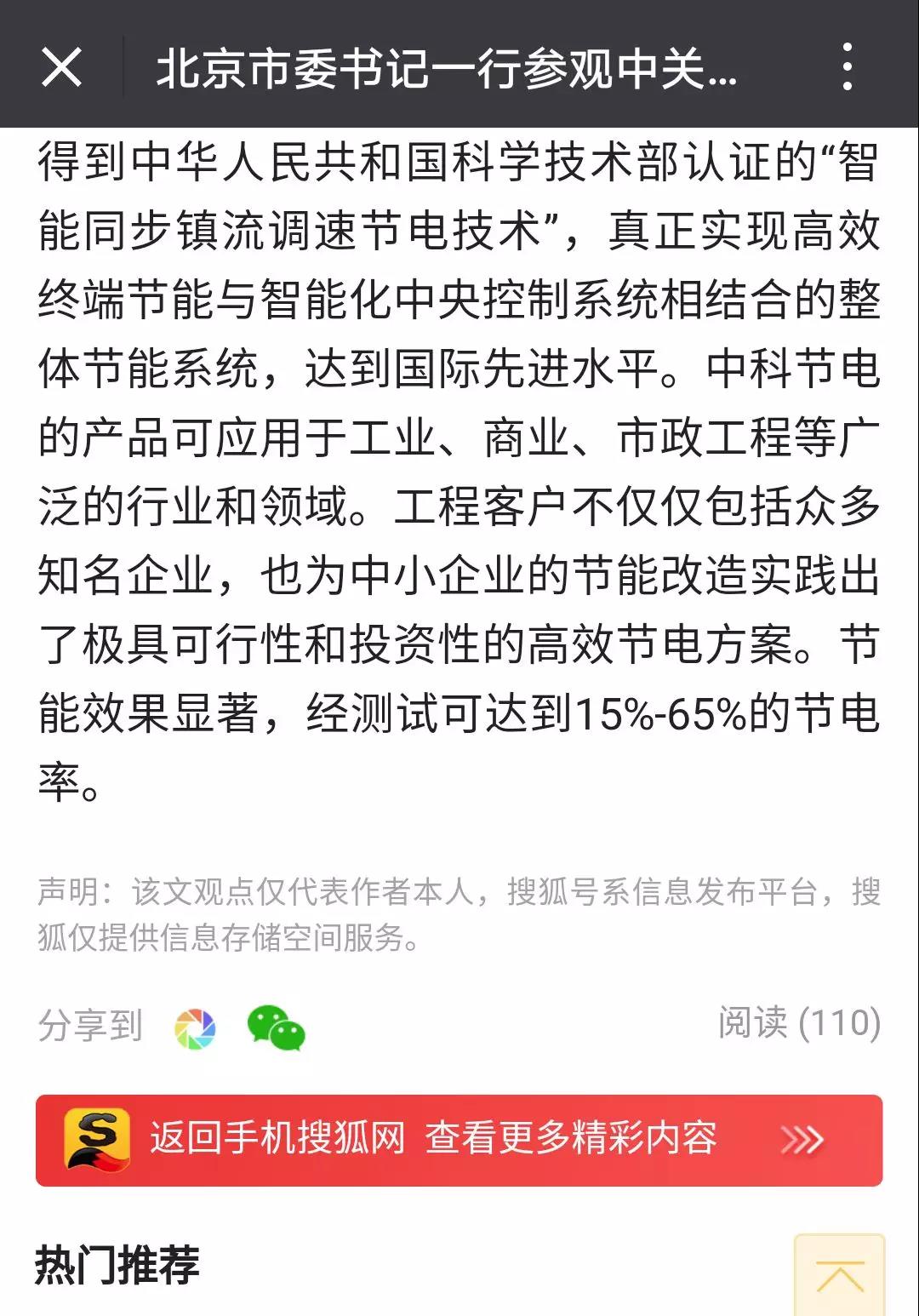 厲害了!中科節(jié)電技術在科博會上備受北京領導關注,引搜狐新聞報道!